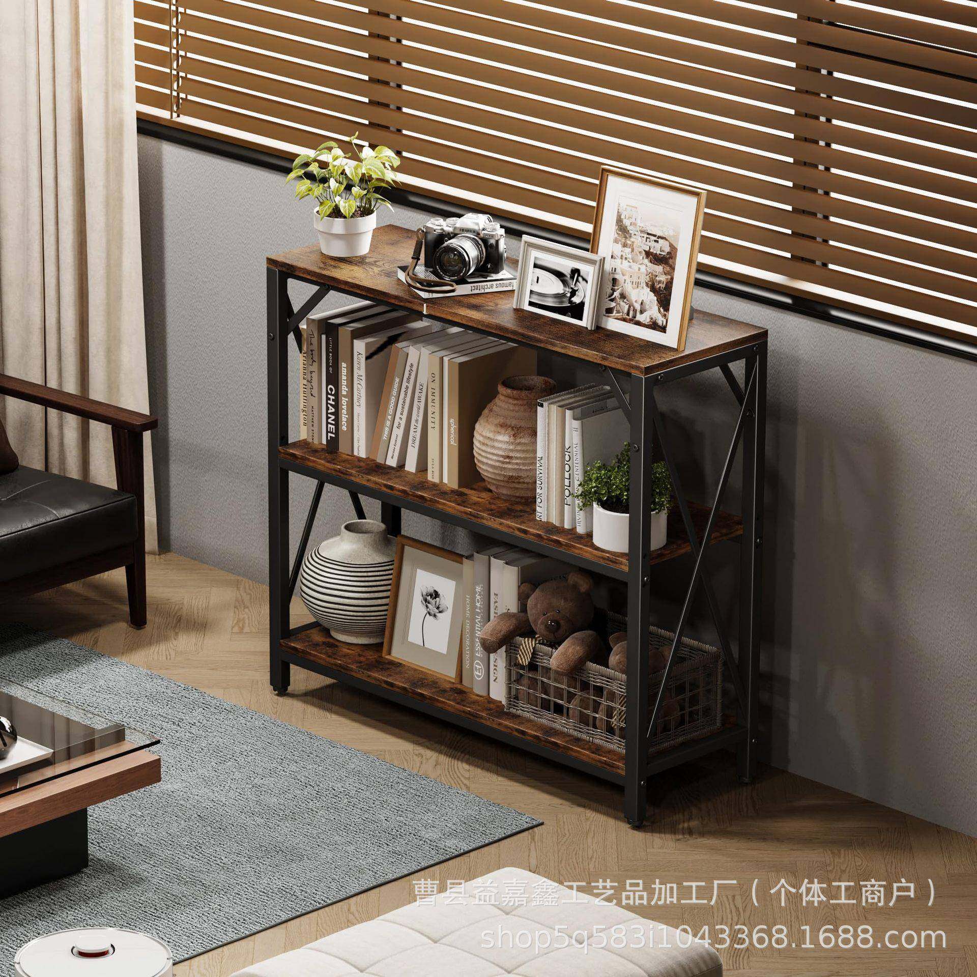 铁艺置物架多杂功家卧室客用厅入户门收能纳桌物书三层置物本收纳