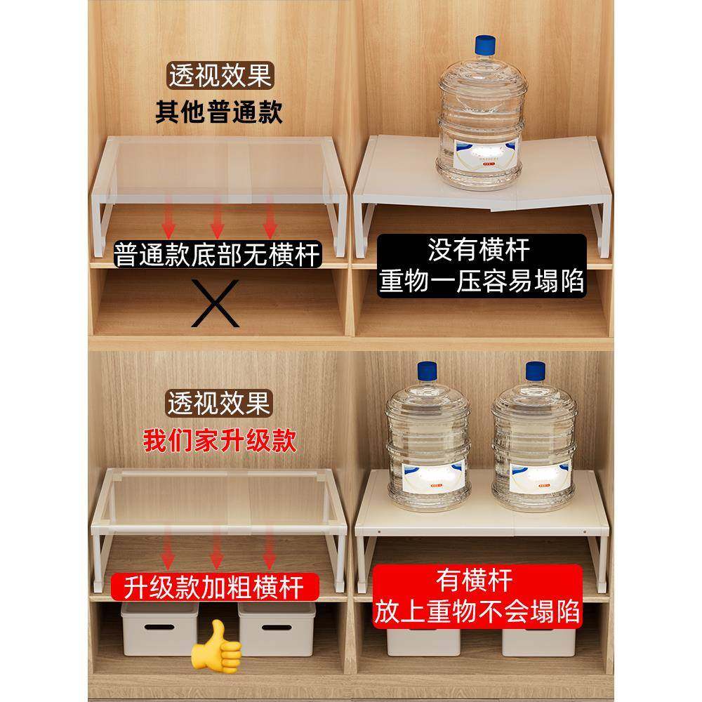 橱柜子收纳F98T5MMH分层隔缩板隔断层衣板厨房可伸铁艺置物架内免