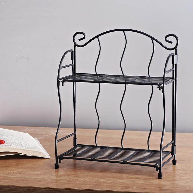 新款直销两层简易可折叠铁艺置物架办公室桌面书架创意书挡金属收