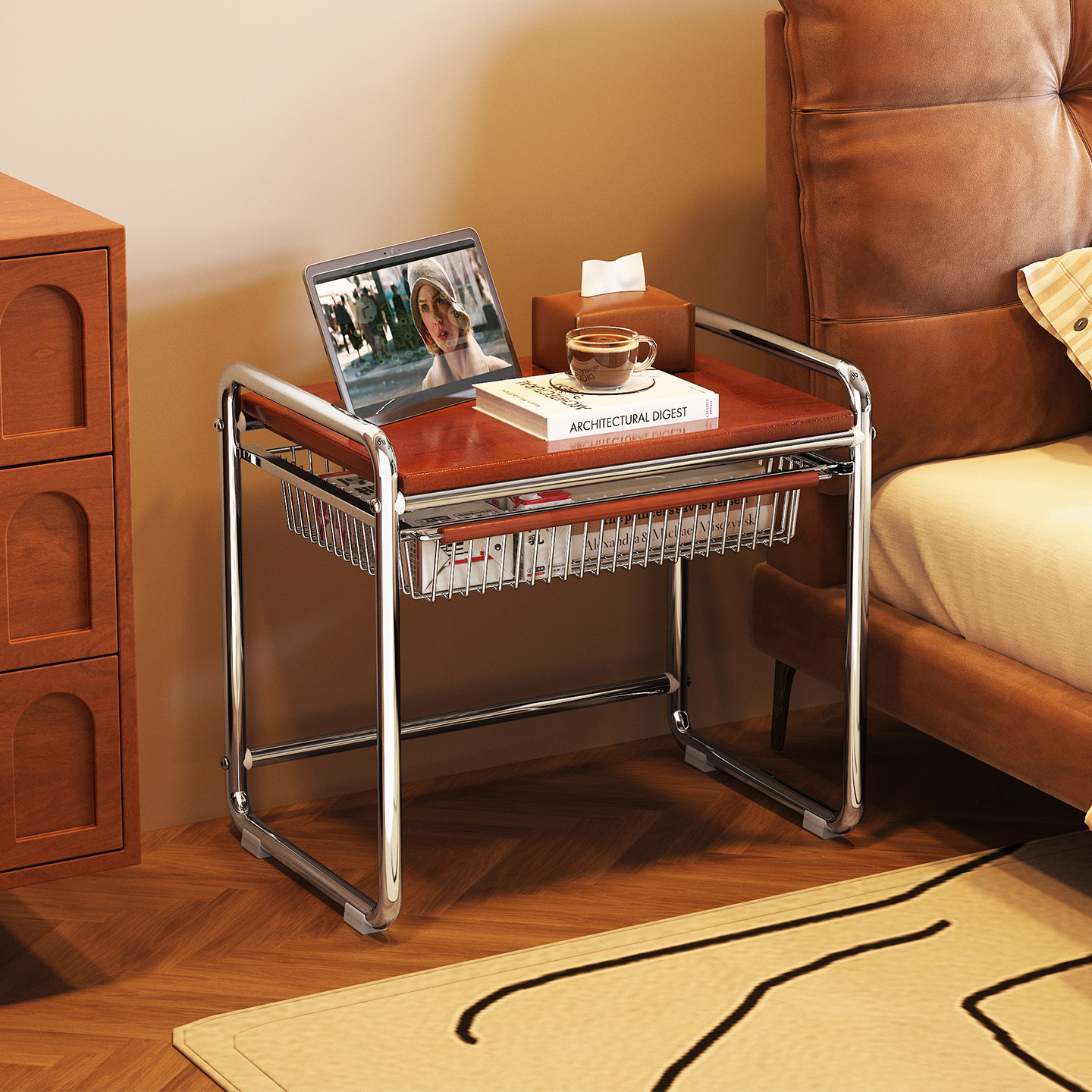 床头柜家用卧室新款铁艺置物架小型落地轻奢高级感小边几2025爆款
