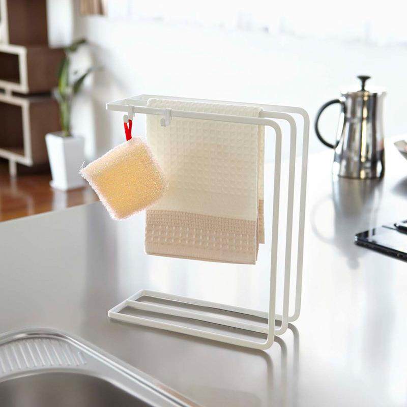 日式简约白色铁艺置物架厨房钢丝球洗碗刷子海绵收纳架子抹布晾晒