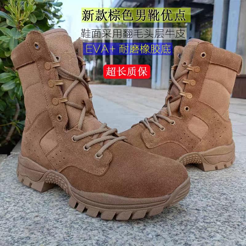棕色作战靴新式作战训靴男超轻减震侧拉链沙漠陆战靴户外训练靴子