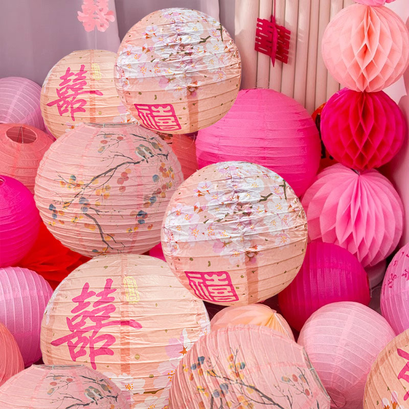 2025新款纸灯笼挂饰喜字装饰农村结婚小灯笼红色树上福字户外蜂窝