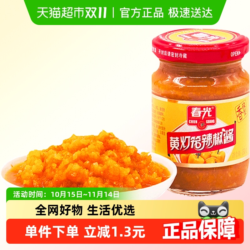 海南特产春光黄灯笼辣椒酱0脂肪下饭酱拌面超特辣蒜蓉黄椒酱瓶装