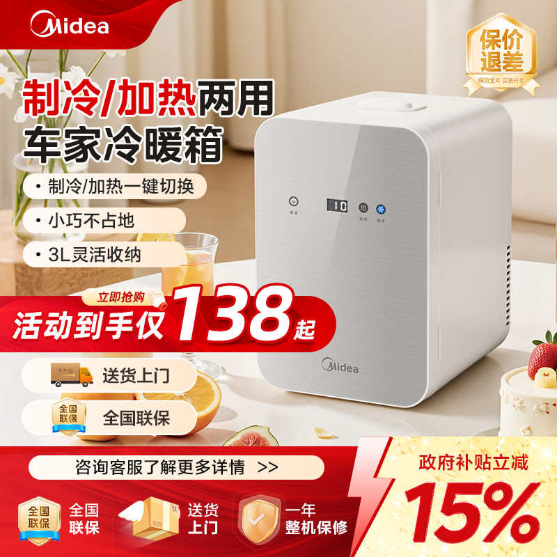 美的小型车载冰箱迷你一人宿舍小冰箱冷藏冷储专用车家两用饮料柜