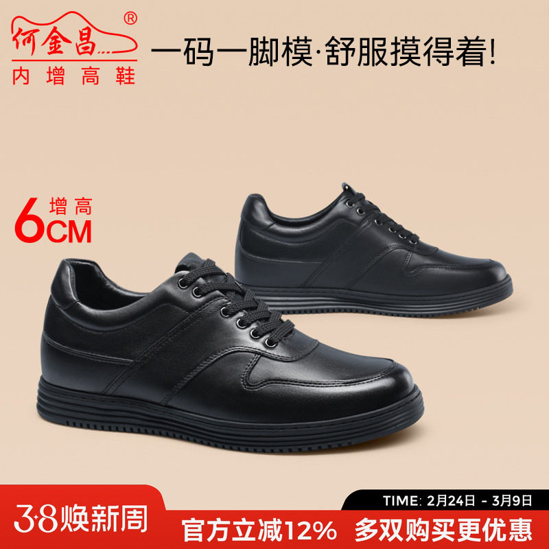 何金昌隐形内增高男鞋6CM秋季新款真皮休闲鞋板鞋男士增高鞋子男