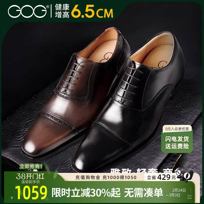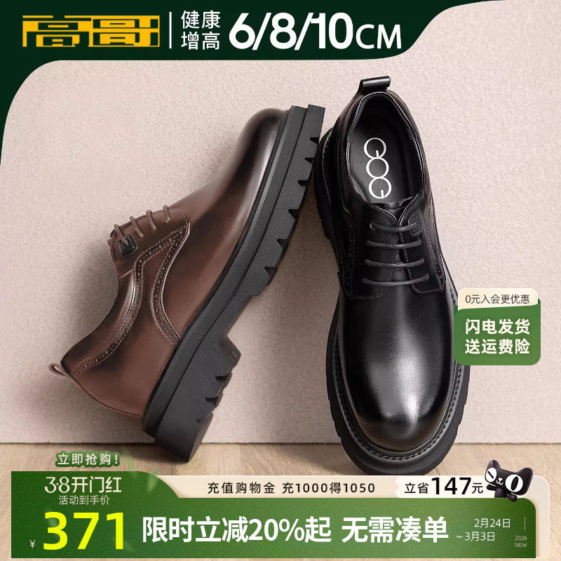 高哥增高鞋皮鞋男春季新款英伦商务正装真皮鞋子隐形内增高男鞋子