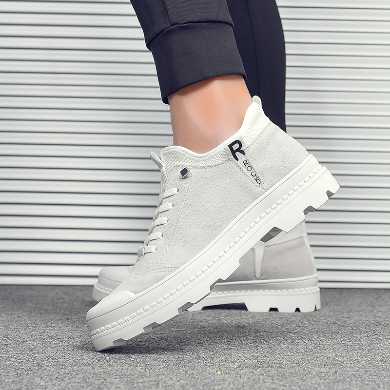 2024春季新款白色内增高男鞋工装马丁靴男士休闲鞋隐形内增高男鞋