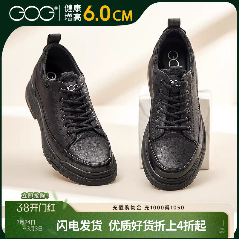 高哥增高鞋2026春季新款休闲皮鞋男真皮工装鞋隐形内增高男鞋7cm