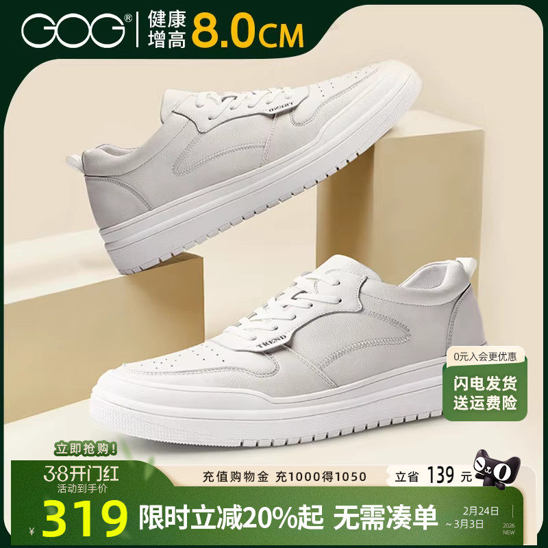 高哥真皮小白鞋男8cm春季新款休闲鞋时尚板鞋潮流隐形内增高男鞋
