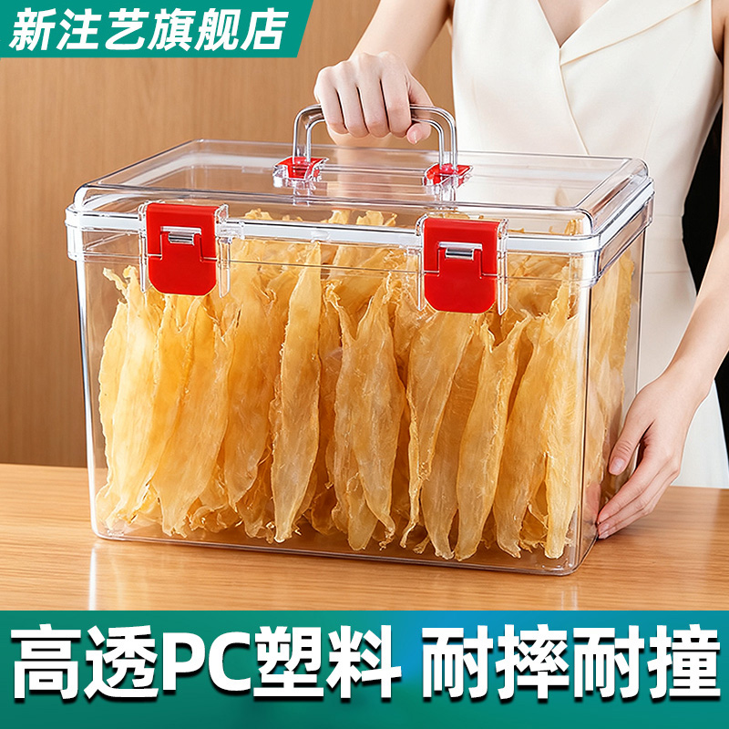 鱼胶储存罐密封箱防潮透明塑料罐海参虫草花胶茶叶陈皮手提收纳盒