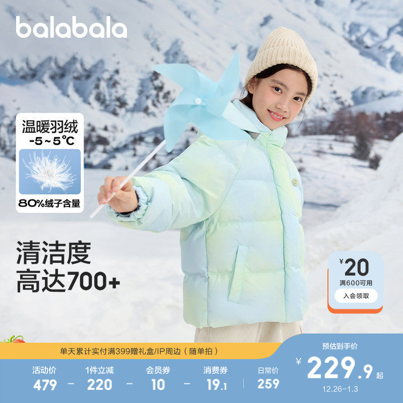 巴拉巴拉童装儿童短款羽绒服女童冬保暖连帽外套上衣舒适户外潮款