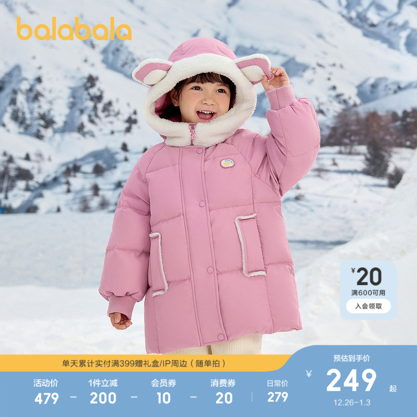 巴拉巴拉童装儿童羽绒服女童冬装连帽外套甜美萌舒适户外潮中长款