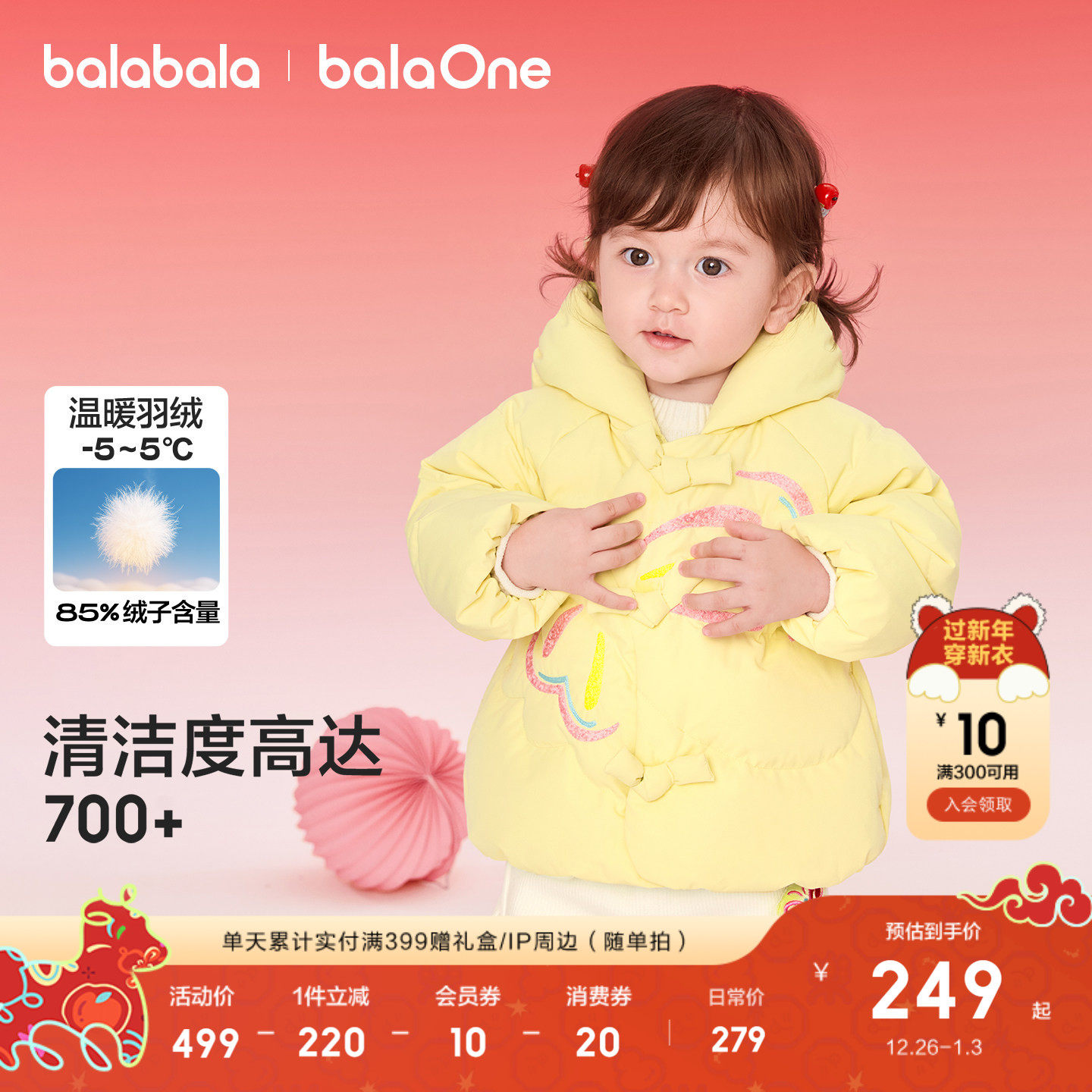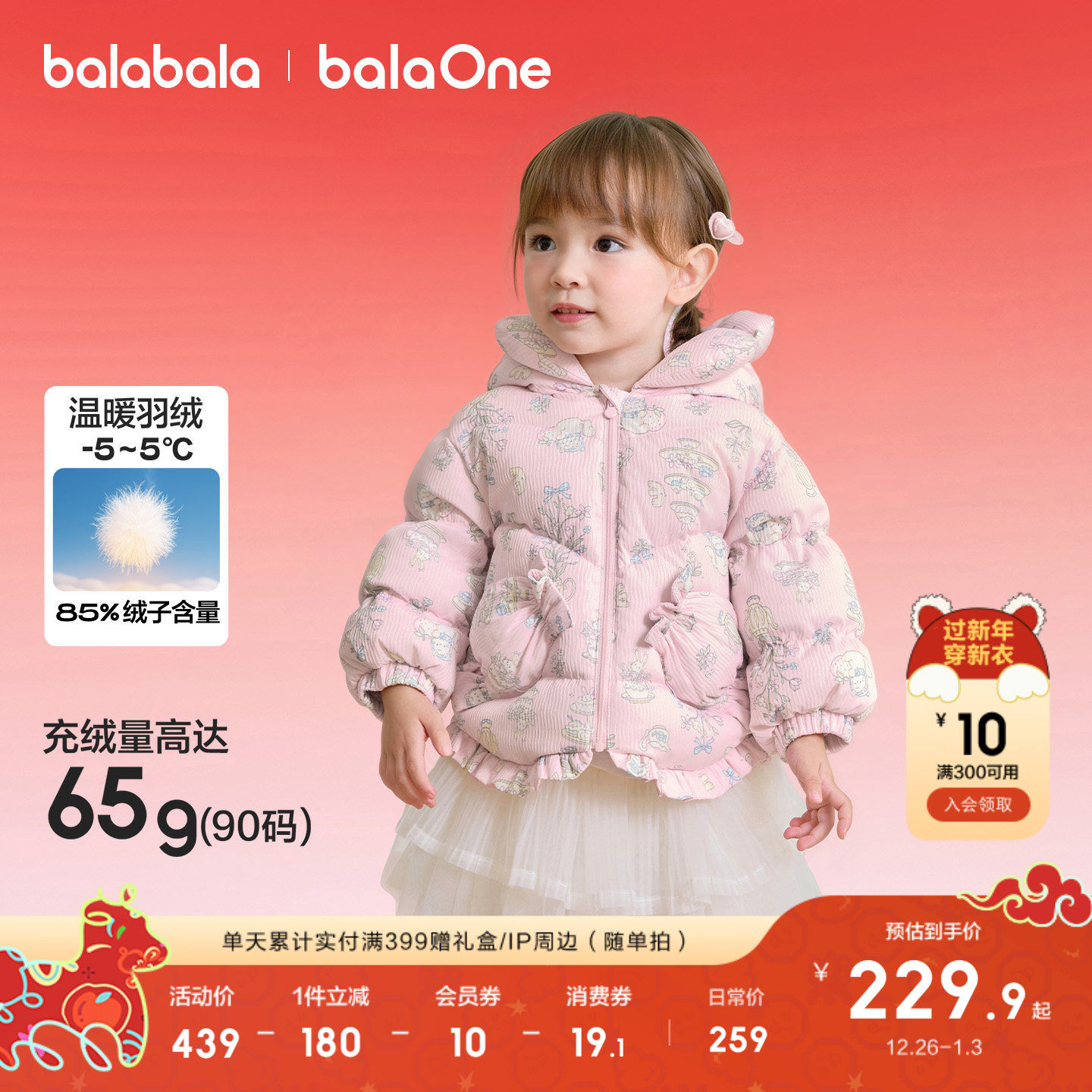 巴拉巴拉balaOne儿童羽绒服宝宝女童男童2025年冬季可爱三防外套