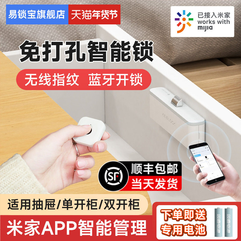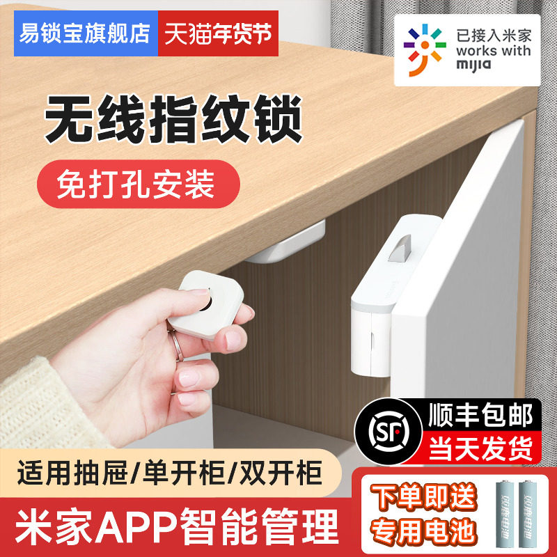 易锁宝指纹抽屉锁免打孔智能双开柜子门锁衣柜鞋柜NFC刷卡隐形锁