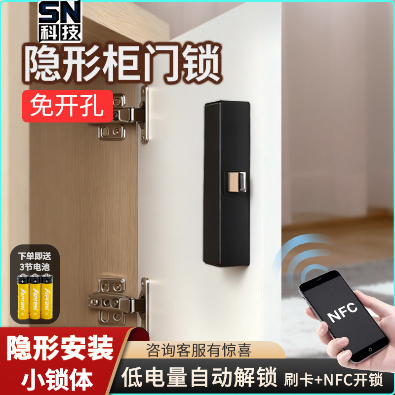 智能酒柜锁免打孔感应柜锁玻璃柜门隐形手机NFC刷卡锁暗装电子锁