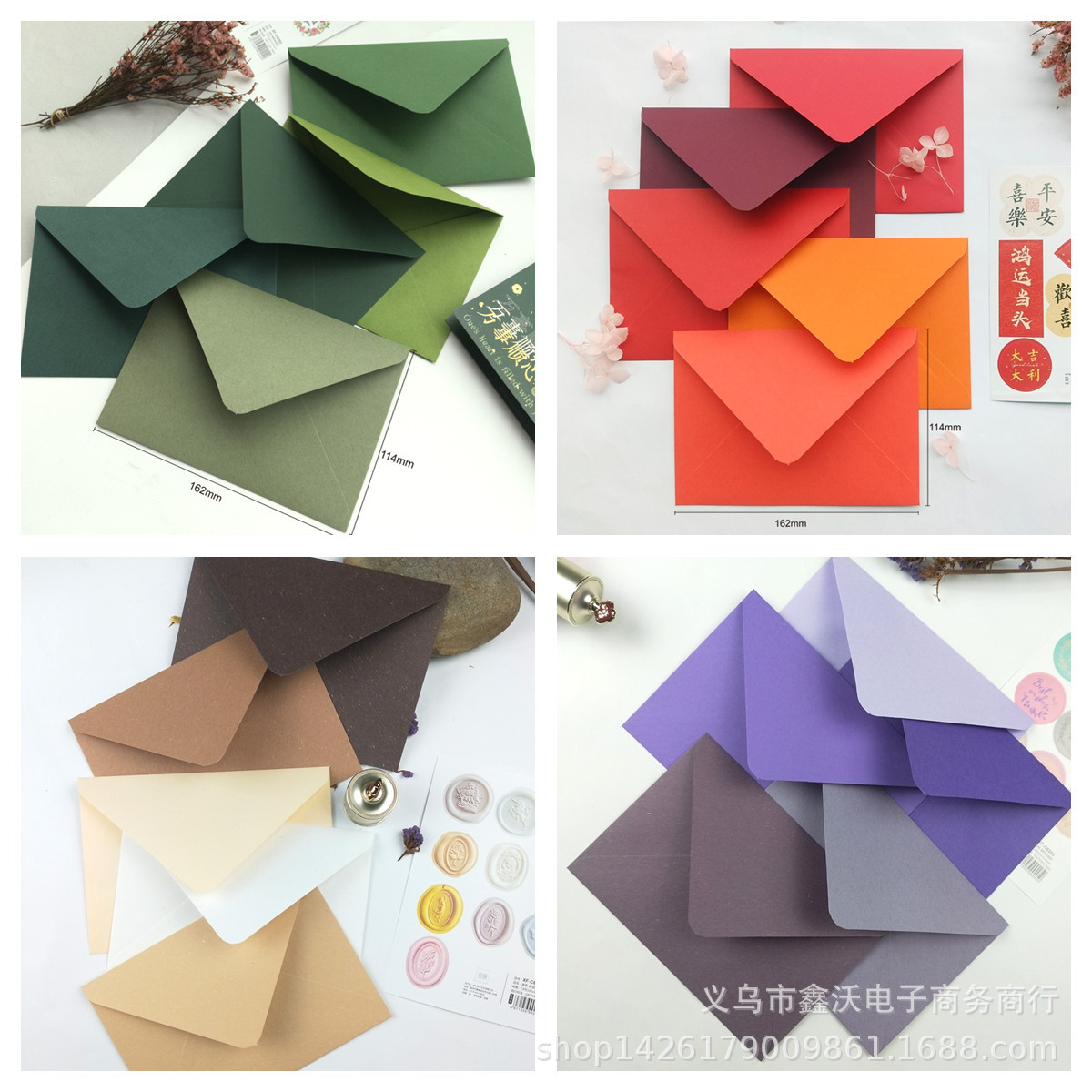 50张彩色西式信封生日婚礼请柬信封可印logo定制简约黄色粉色纯色彩色明信片小卡片6寸照片布景签到墙信封袋