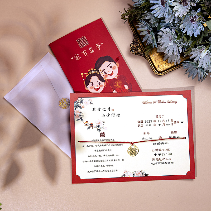 红绳子请帖2024结婚宴喜帖创意纸质个性小众婚庆用品婚礼请柬信封