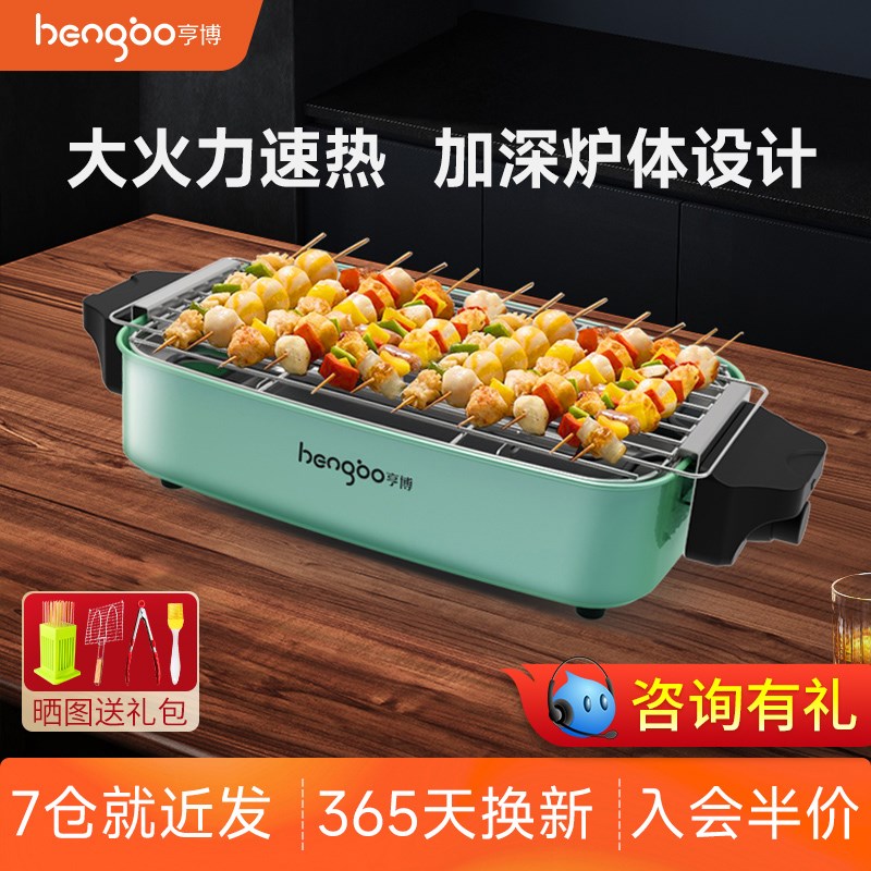 亨博电烧烤炉家用电烤炉无烟烧烤羊肉串机大功率多功能室内烧烤架