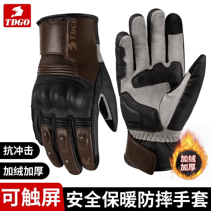 硬核骑士摩托车冬季骑行手套加绒防风保暖真皮防摔碳纤维防水男女