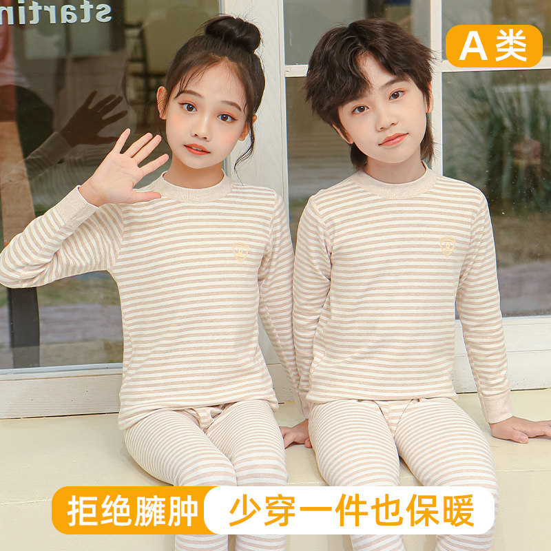 儿童秋衣秋裤内衣套装彩棉7中领5女童6男童8岁女孩9纯棉线衣线裤