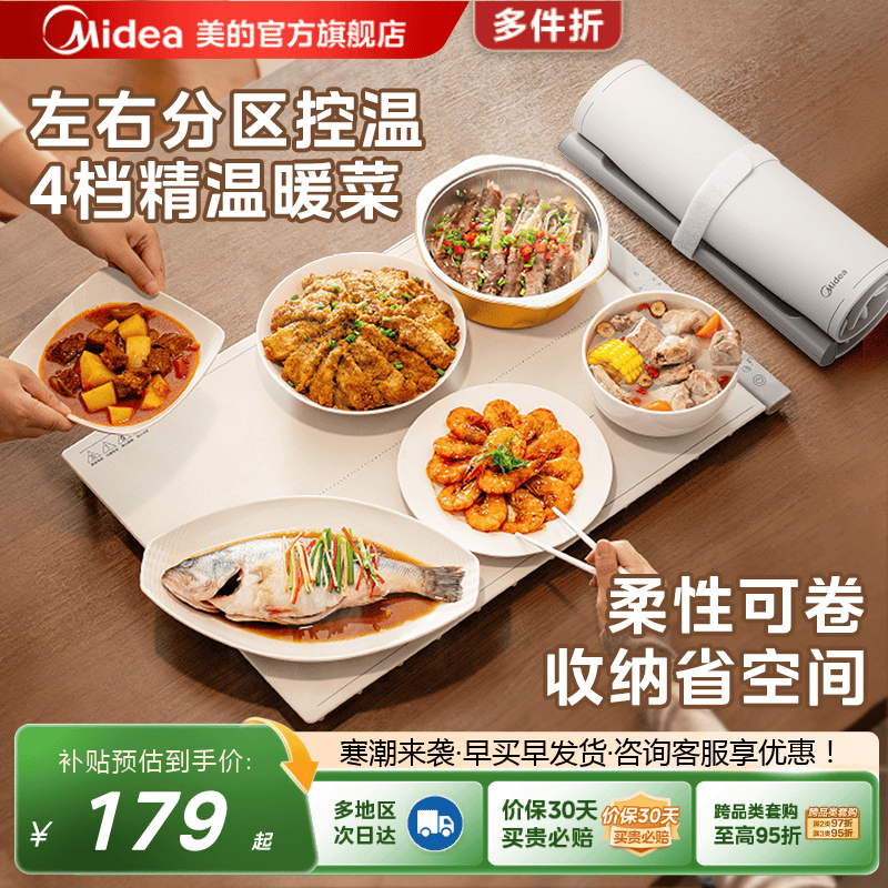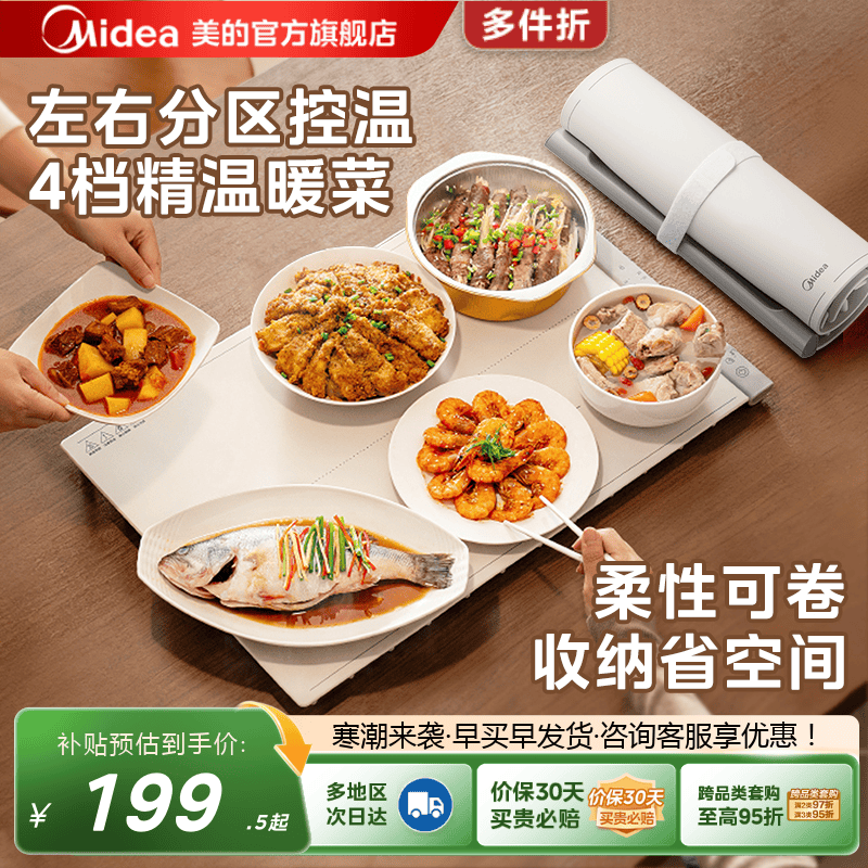 美的柔性加热暖菜板家用餐桌垫饭菜保温2025新款折叠保温板热菜板