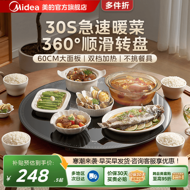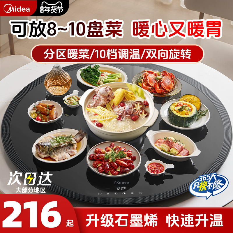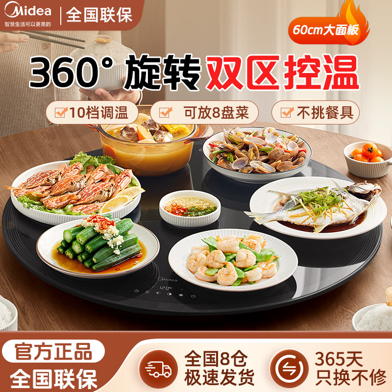美的暖菜板家用热菜神器餐桌旋转板多功能预约大功率暖饭菜保温板