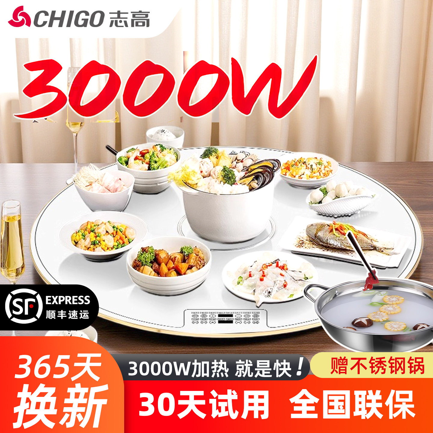 志高多功能家用餐桌转盘大功率火锅暖菜板饭菜保温板热菜板加热板