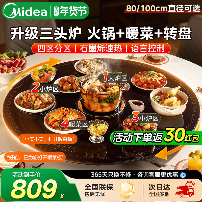 美的热菜板带火锅饭菜保温板家用多头炉暖菜板加热圆餐桌转盘新款