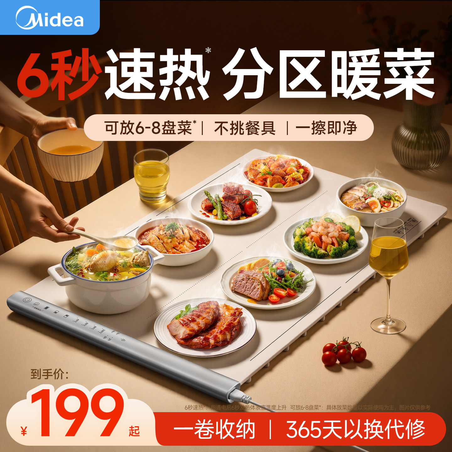 美的柔性暖菜板饭菜保温板热菜板家用多功能长形自动旋转加热餐桌