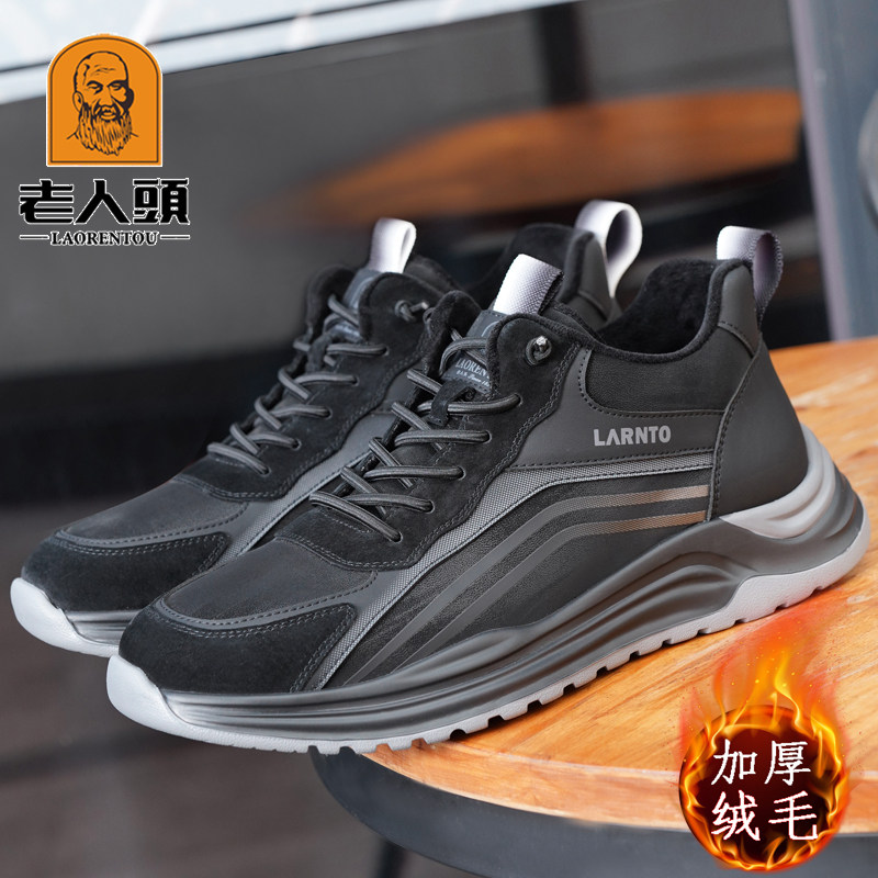 老人头男鞋2025冬季保暖加绒运动棉鞋男中老年爸爸皮鞋真皮软底鞋