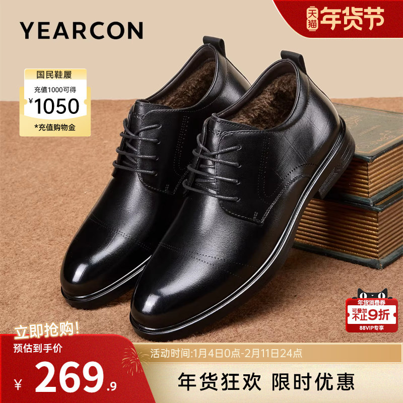 意尔康男鞋2025新款冬季真皮加绒加厚保暖皮鞋中老年男士爸爸棉鞋