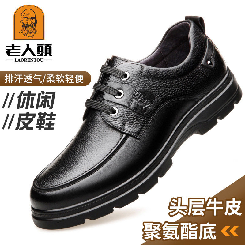 老人头男鞋冬季皮鞋男士中年商务休闲皮鞋真皮加绒软底舒适爸爸鞋