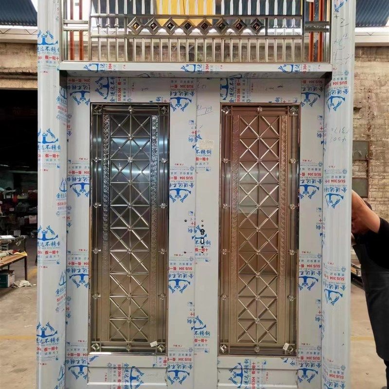 工厂定制304不锈钢门入户门双开对开农村别墅门防盗入户小区大门