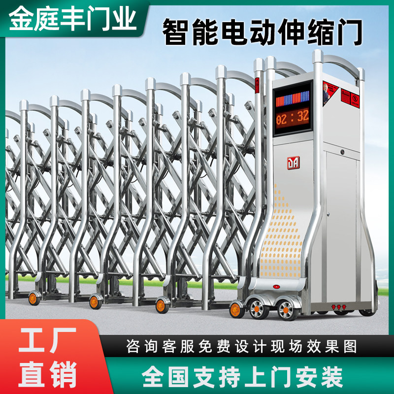 直销304不锈钢伸缩门电动大门折叠工厂小区工地学校自动收缩推拉