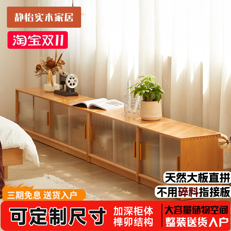 实木电视柜储物柜地柜飘窗柜家用客厅矮柜抽屉防尘柜日式榉木简约
