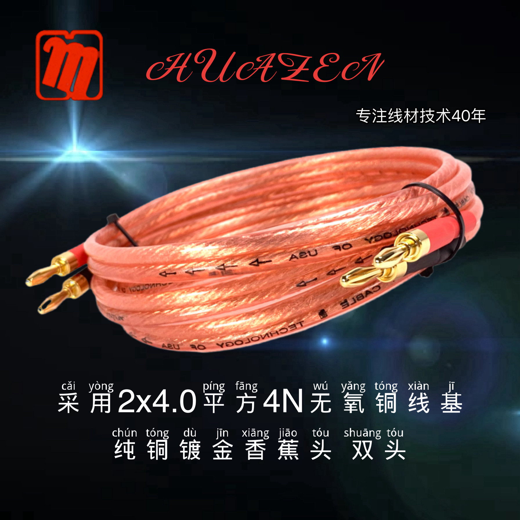 SH905XY华敏华真牌音响线 音箱线喇叭线成品香蕉头4n无氧铜环绕