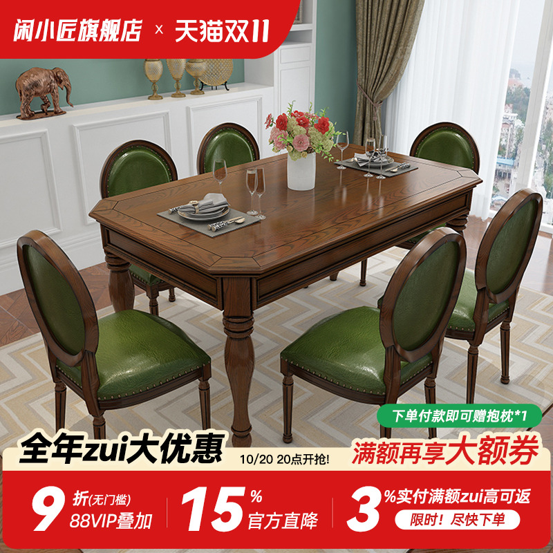 美式纯全实木餐桌椅组合饭桌子轻奢欧式餐厅家用长方形餐台小户型