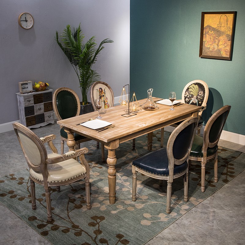 欧式美式餐桌组合实木桌子覆古做旧拉丝松木餐桌法式饭厅简长方桌