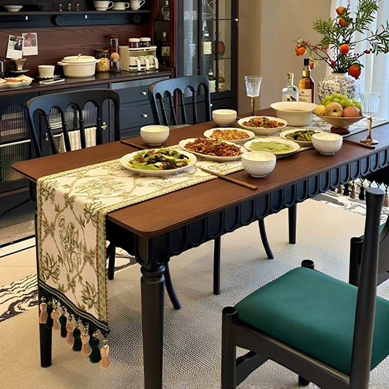 美式乡村简约实木餐桌椅组合黑色轻奢现代小户型法式长方形家具用