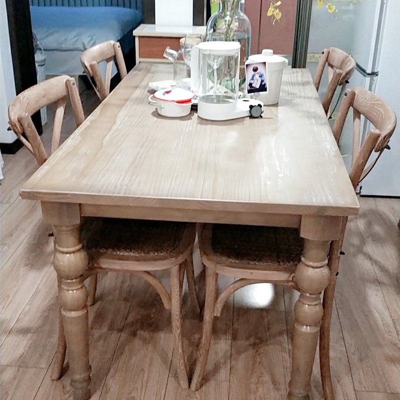 美式乡村实木餐桌椅组合白蜡木小户型家用长方形条桌复古客厅饭桌