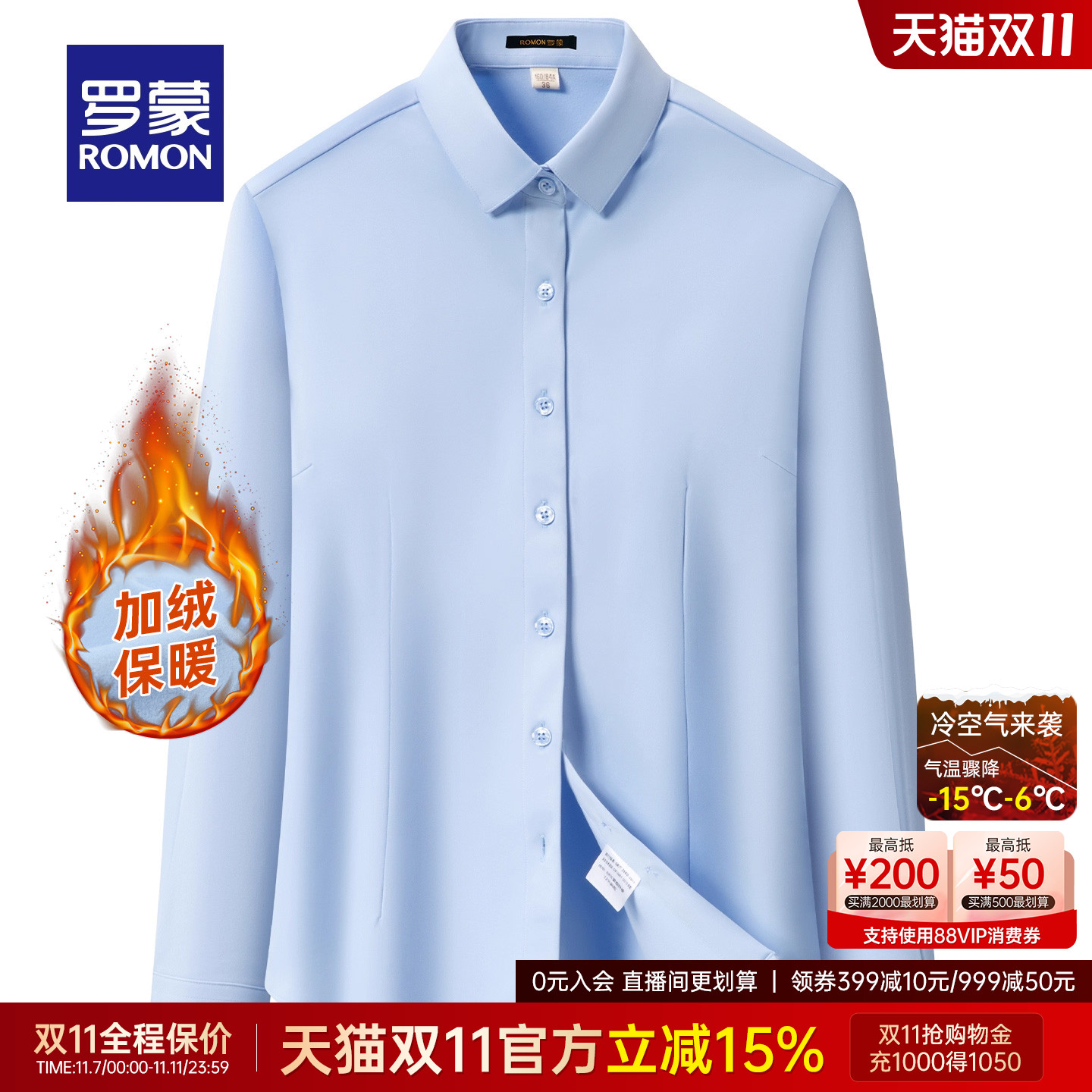 【加绒加厚】罗蒙女士商务休闲长袖衬衫2025冬季新款修身显瘦上衣