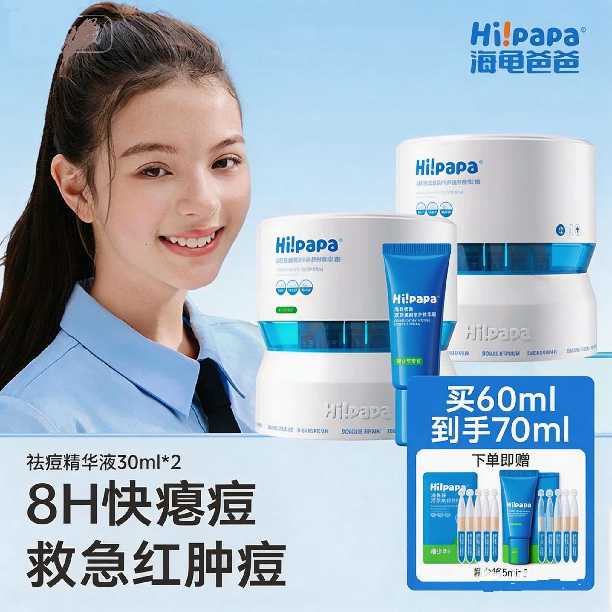 海龟爸爸祛痘次抛精华液套装急救瘪痘青少年控油防反复淡化去痘印
