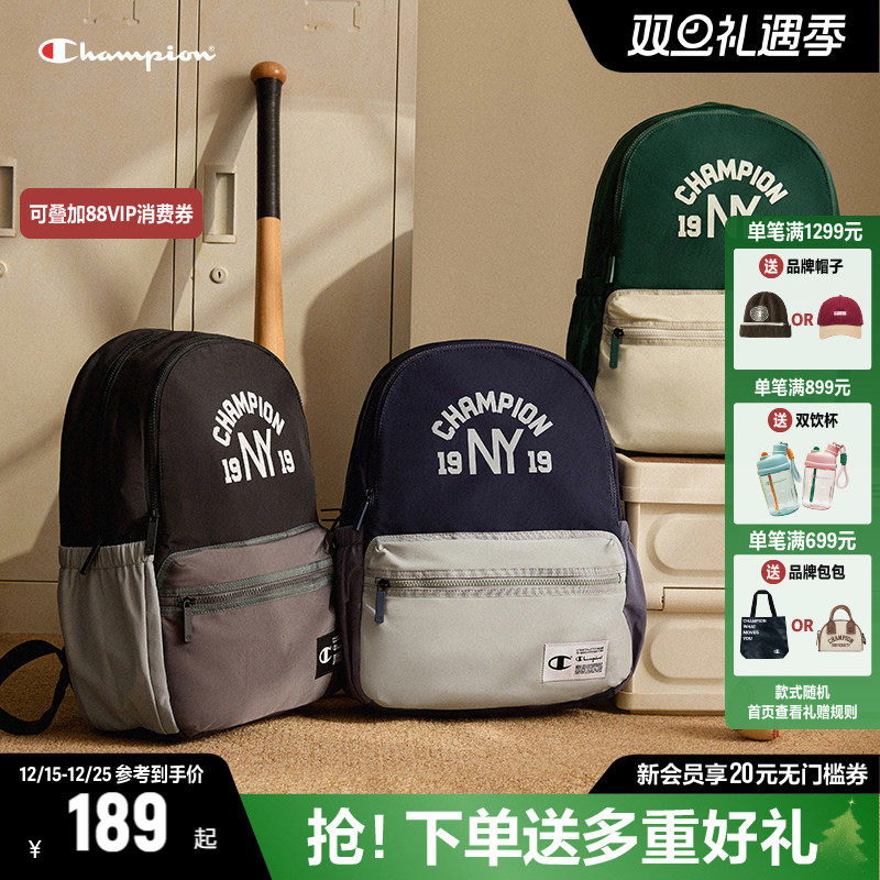 Champion冠军双肩包男女新款复古时尚大容量校园风撞色背包书包