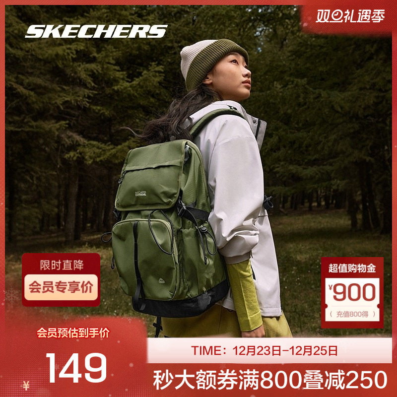 Skechers斯凯奇男女同款大容量双肩背包舒适背负复古户外出行
