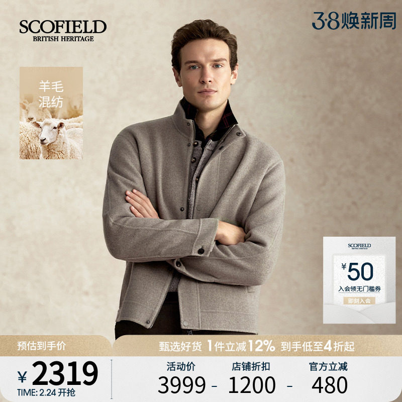 【羊绒】SCOFIELD男2025年秋冬新品短款立领通勤羊毛大衣毛呢外套