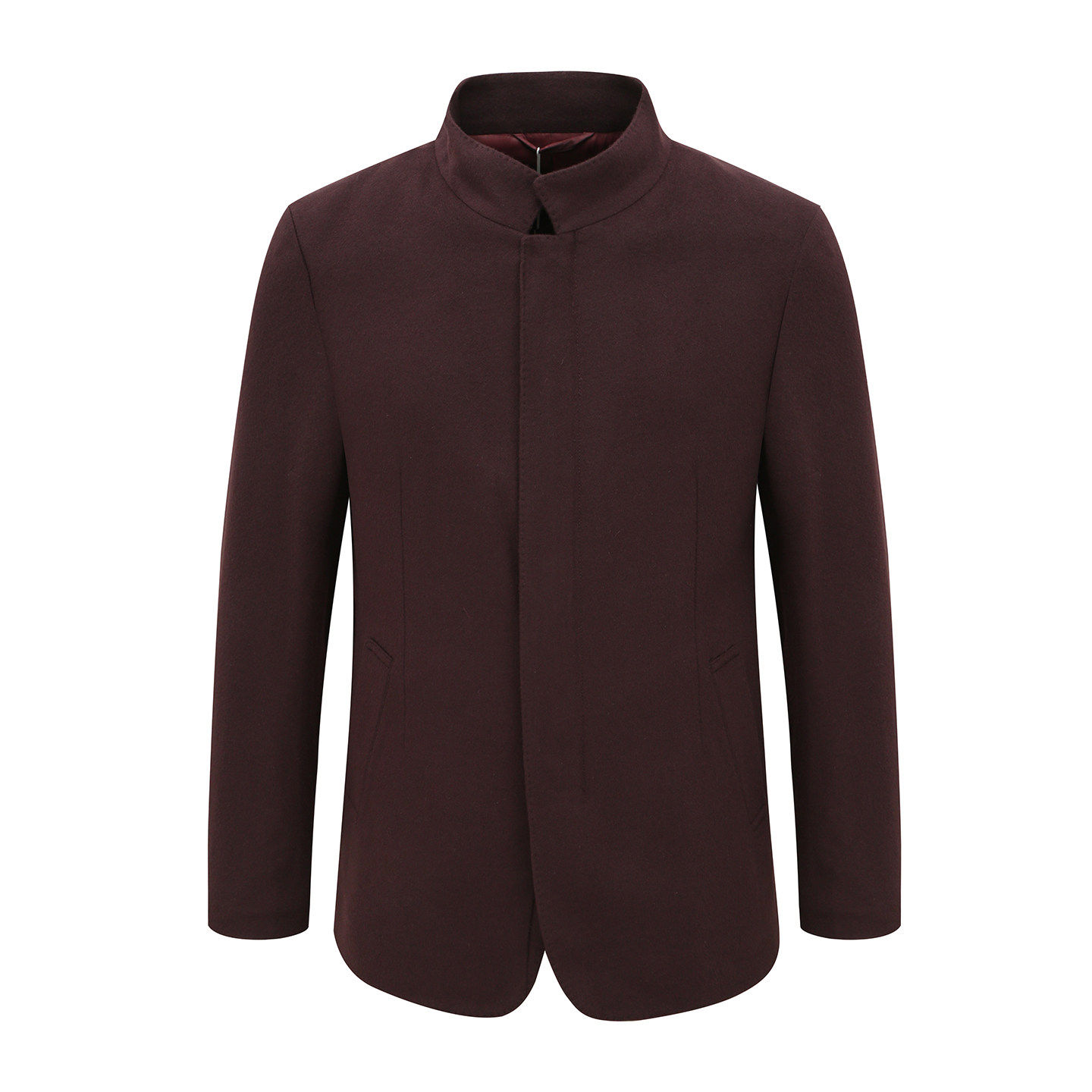 MY514美断码清仓秋冬款中年男士暗红色立领羊毛羊绒混纺毛呢大衣