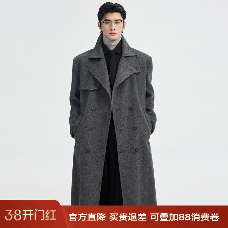 [100%全羊毛/过膝长款] 伯爵卓尔双面呢大衣男秋冬季立领垫肩外套