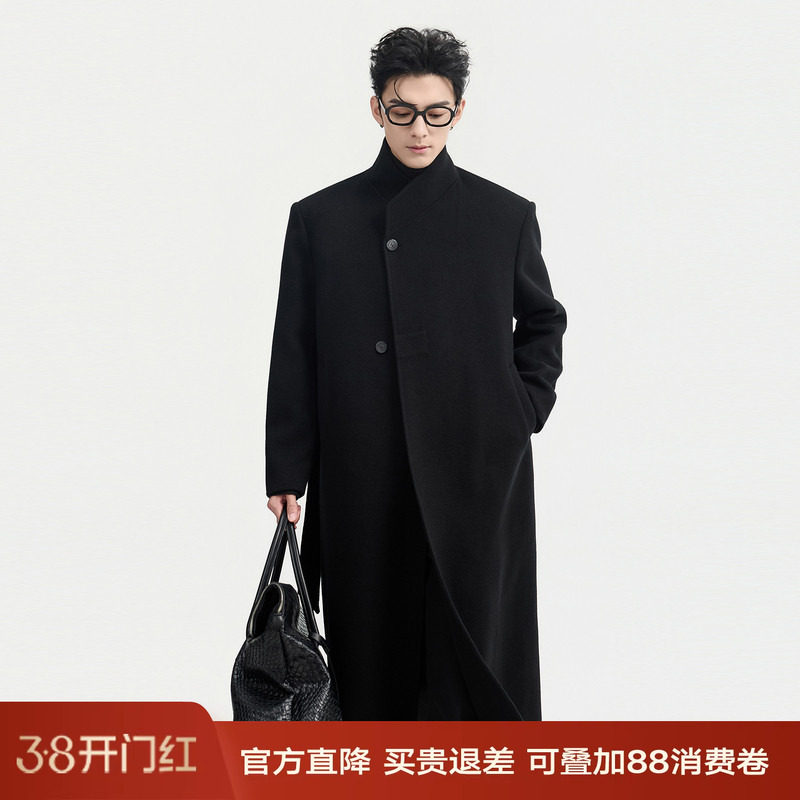半墨大码男装新中式毛呢大衣男士商务行政立领风衣宽松中长款大衣