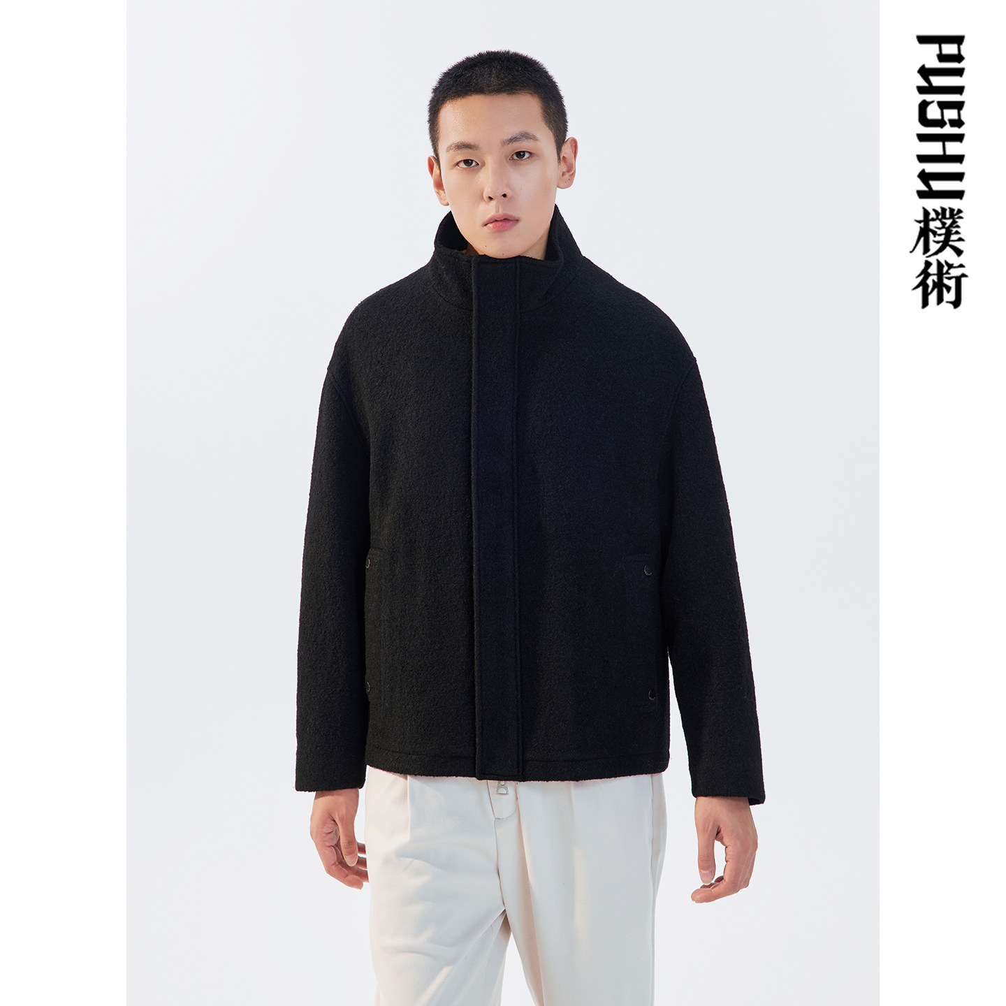朴术男装2025年秋冬季黑色痞帅百搭外套立领绵羊毛100呢大衣